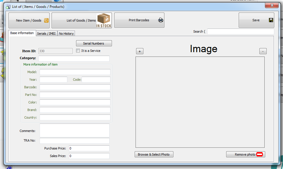 a new code will be generated and it will be waiting for you to enter information of items (Product of goods)